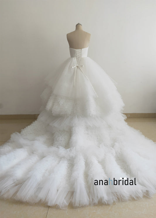 Strapless Ivory Ruffled Tulle Luxury Photoshoot Dress