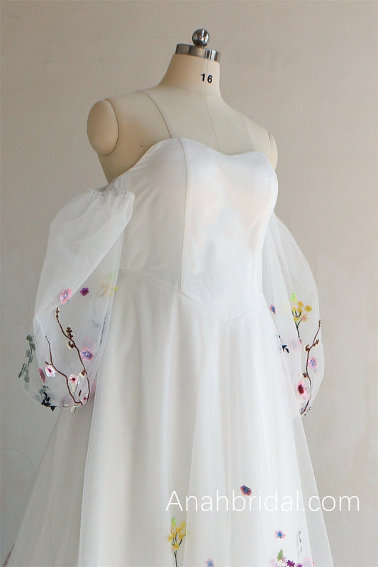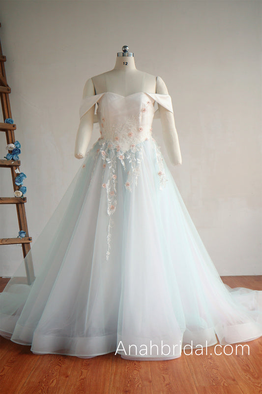 Colorful Embroidery Lace Basque Waist Wedding Dress