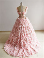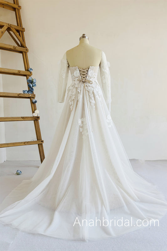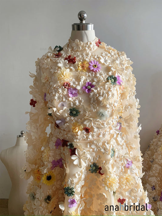 Ivory Floral Lace Bridal Gown//3D Flowers Bridal Dress