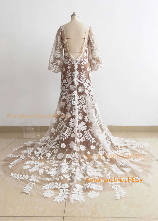 3D Lace Bridal Dress /Embroidery Lace Wedding Dress