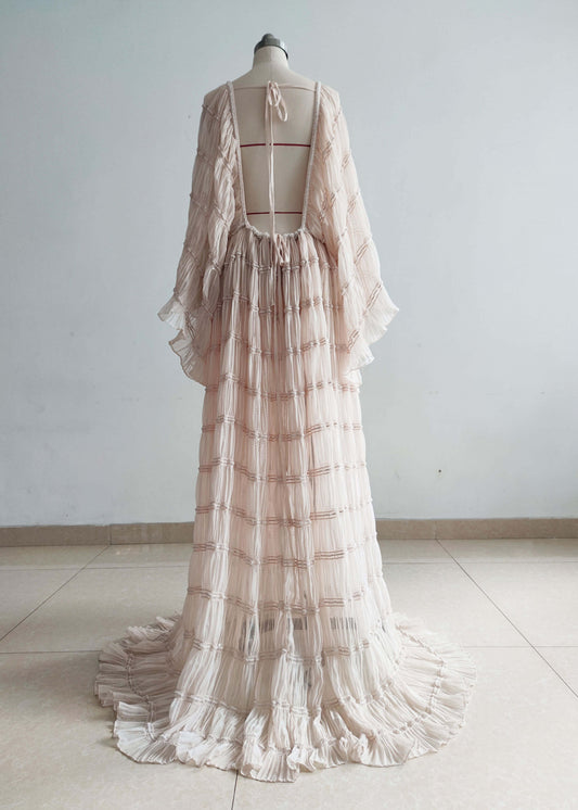 Cream V Neck chiffon Maternity Dress/Photoshoot Dress
